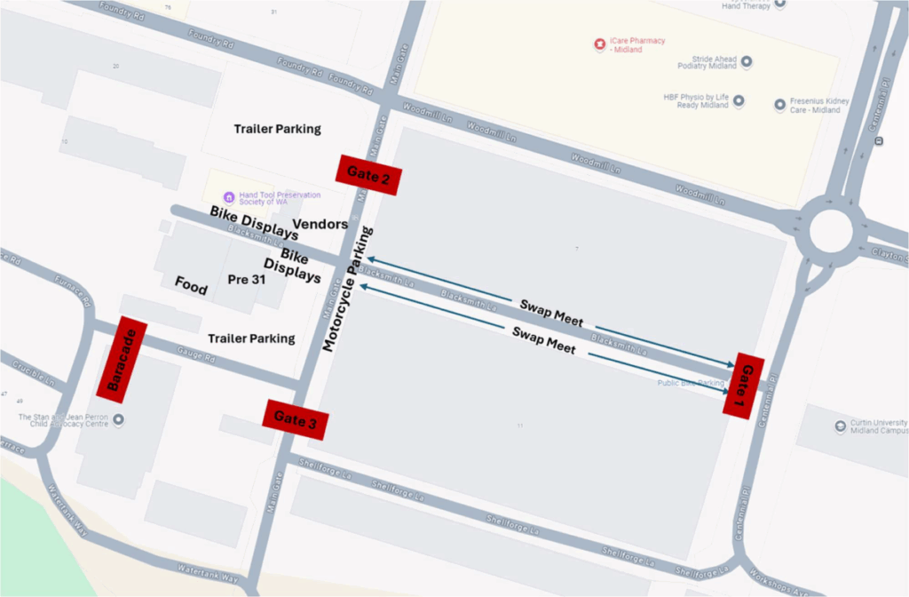 Consistent with the theme of promoting heritage motorcycles, the Old iron Show is run in conjunction with the Machinery Preservation Club of WA at their site in the Midland Railway Workshops heritage precinct. The Machinery Preservation Club also has displays of old machinery. Their is plenty of parking at this venue.
